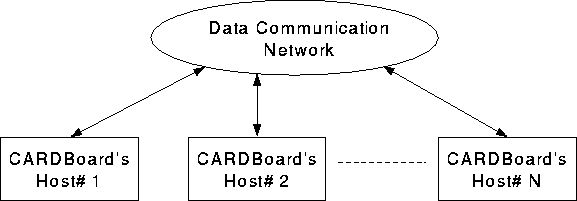 A typical CARD host will have 4 CARDBoards (plug-in computation cards) with each node having four floating-point microprocessors and a communication/barrier interface card. This communication/barrier card will provide inter-host communication and inter-host barrier synchronization. This card may also provide inter-node (CARDBoard to CARDBoard) communication and inter-node barrier synchronizations for the CARDBoards mounted on the same host computer, but this issue is still unresolved.